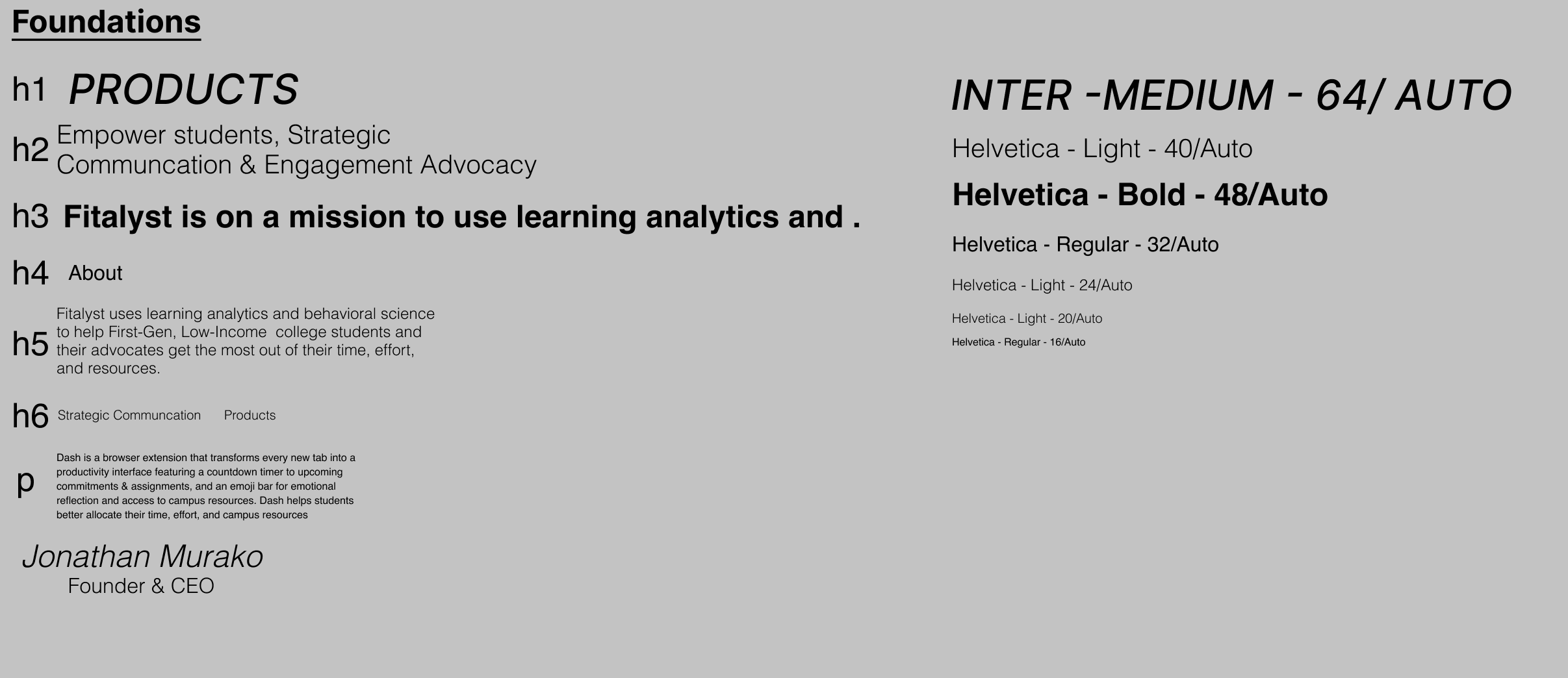Having done work previously for the product Fitalyst Dash I had the necessary information I needed for the basis of my User Interface, and design system.