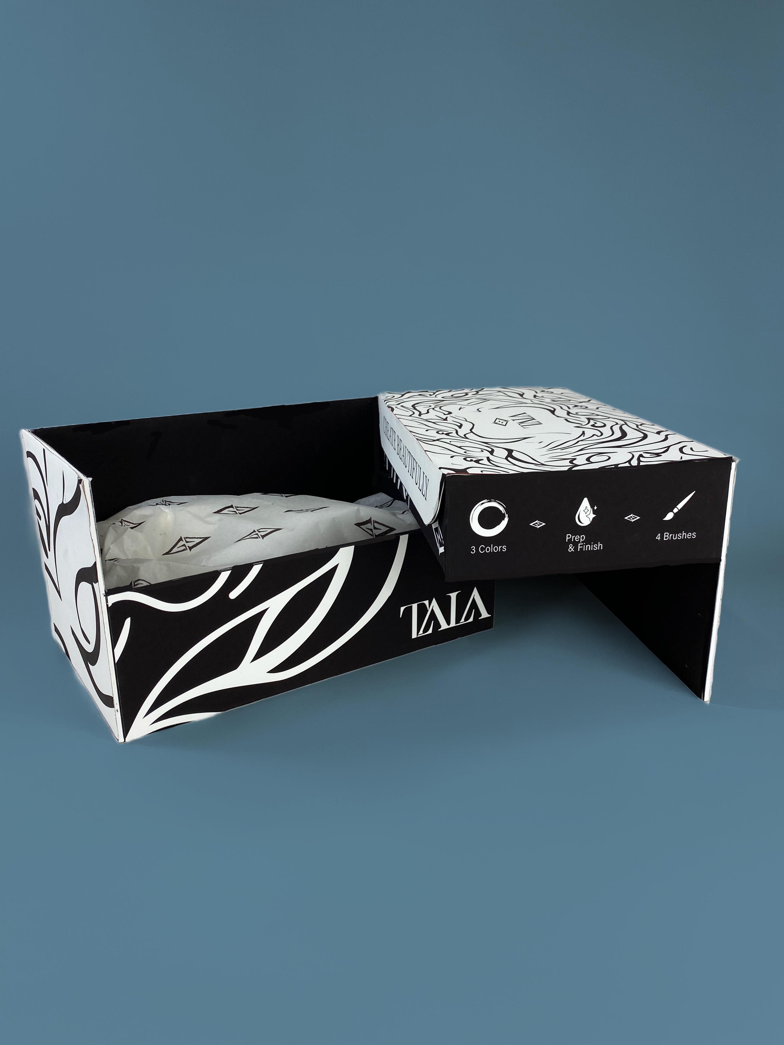 TALA is a concept brand created around the idea of empowering people to design and customize their own sneakers. The project focused on developing a beginner-friendly sneaker customization kit packaged within a dynamic and visually engaging box system.
