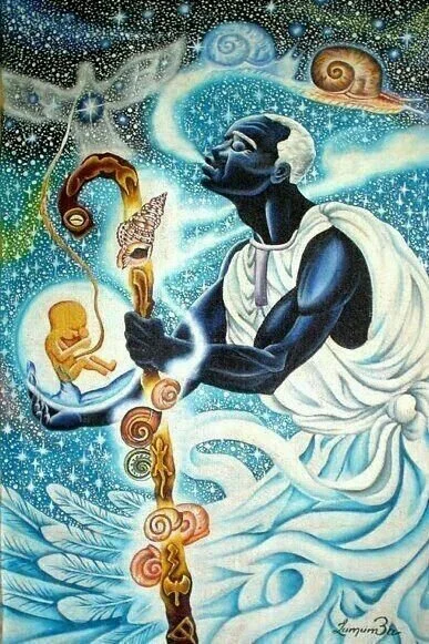 Obatala is traditionally represented by a dove, and the colors light blue and white are associated with purity, creativity, and intention.